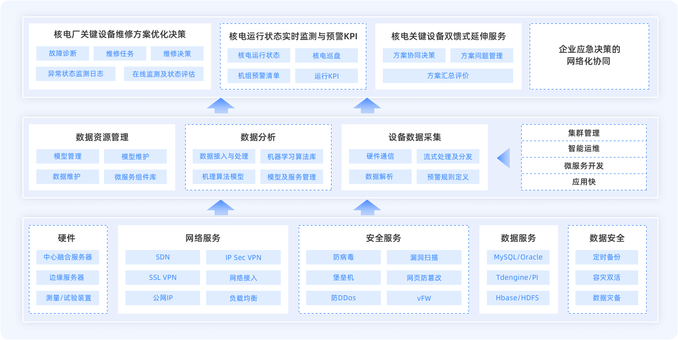 構(gòu)建面向機(jī)組實(shí)時運(yùn)行監(jiān)控預(yù)警、設(shè)備雙饋式服務(wù)、維修應(yīng)急決策全面協(xié)同的一體化核電運(yùn)維決策系統(tǒng)。通過設(shè)計、制造、運(yùn)營、服務(wù)等多源異構(gòu)數(shù)據(jù)的全面存儲和管理,如電廠PI系統(tǒng)、IETM系統(tǒng)、便攜式終端、循泵試驗(yàn)臺等集成,借助數(shù)據(jù)深度建模,實(shí)現(xiàn)對運(yùn)行狀態(tài)的評估以及運(yùn)維活動的實(shí)時決策優(yōu)化,實(shí)現(xiàn)設(shè)備故障從“被動反應(yīng)”到“主動預(yù)防”的模式轉(zhuǎn)變,提升企業(yè)生產(chǎn)運(yùn)營的可靠性和安全性,助力提質(zhì)增效。
