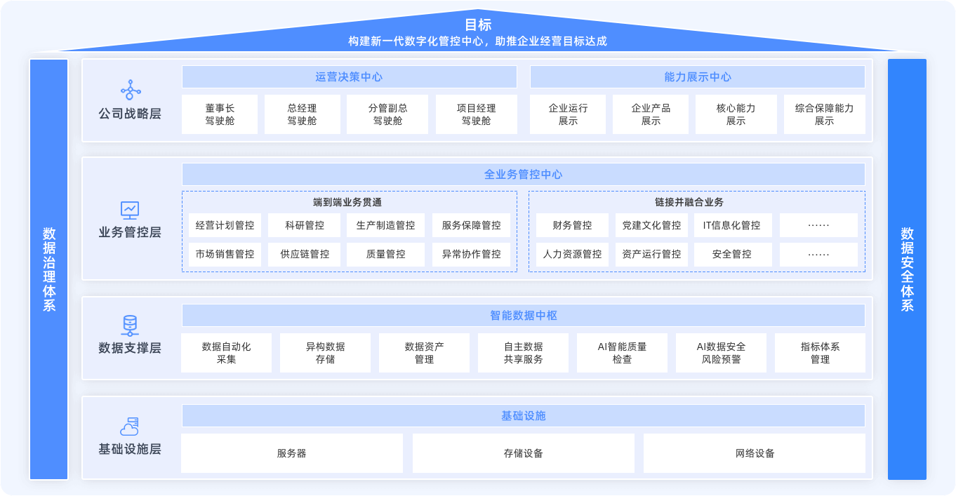 面對(duì)復(fù)雜多變的市場(chǎng)環(huán)境和日益激烈的競(jìng)爭(zhēng),以往基于層層匯報(bào)或會(huì)議的模式難以支撐領(lǐng)導(dǎo)快速?zèng)Q策。新一代智慧運(yùn)營(yíng)管控以“戰(zhàn)略穿透、數(shù)據(jù)驅(qū)動(dòng)、敏捷響應(yīng)、價(jià)值外化”為核心,通過端到端貫通與智能協(xié)同,實(shí)現(xiàn)“目標(biāo)可追蹤、執(zhí)行可調(diào)控、問題可閉環(huán)、能力可感知”,最終推動(dòng)企業(yè)從傳統(tǒng)經(jīng)驗(yàn)管理向數(shù)據(jù)智能驅(qū)動(dòng)的精益運(yùn)營(yíng)轉(zhuǎn)型,為可持續(xù)競(jìng)爭(zhēng)力提供系統(tǒng)化支撐,助力數(shù)字化轉(zhuǎn)型升級(jí)。